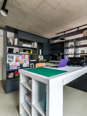 Este projeto foi feito em parceria com a Arquiteta Andrea Morao para uma jovem estilista de bolsas. Onde a necessidade dela era ter um atelier junto com sua moradia.